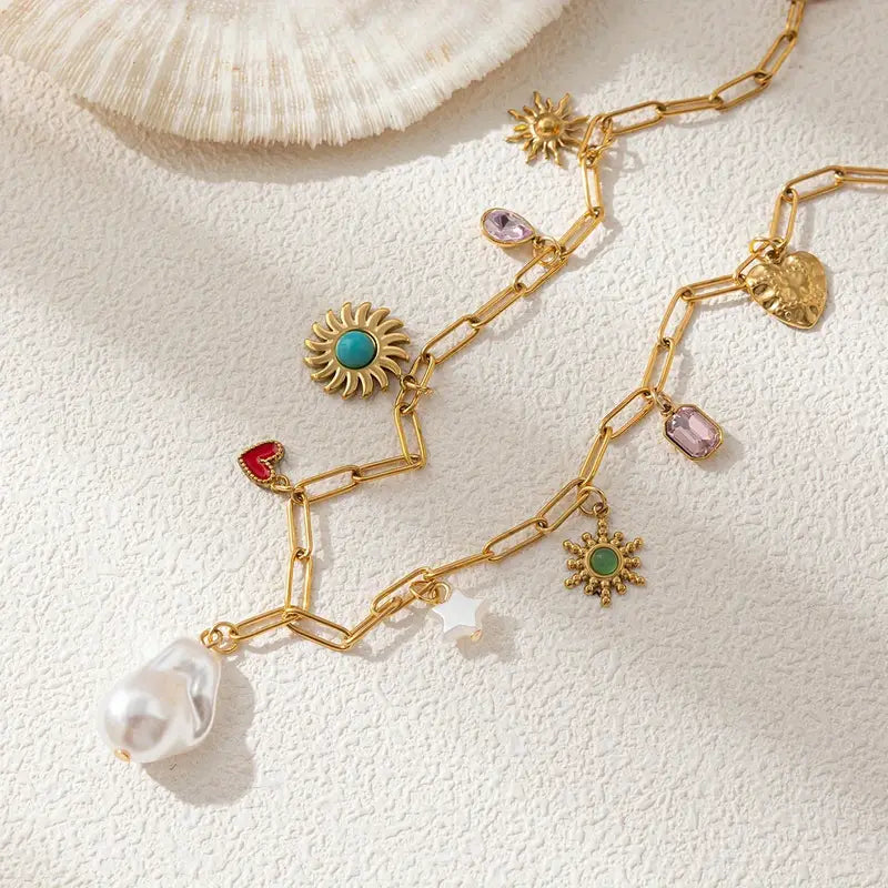 Coastal Elegance: Starfish, Star, and Flower Pendant Necklace